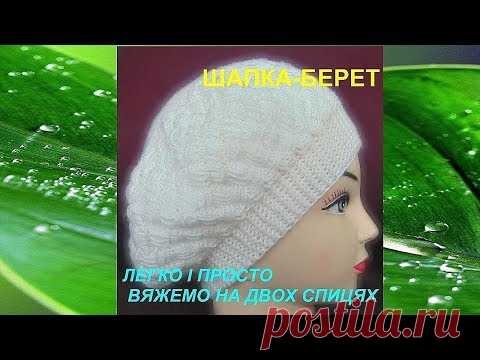 Красива, напіважурна,весняно-осіння шапка.Вязана на двох спицях.