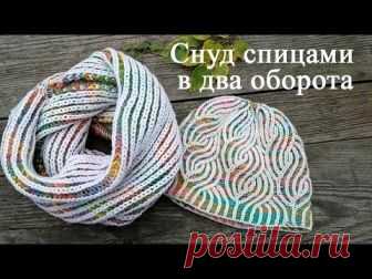 снуд спицами в два оборота/английская цветная резинка