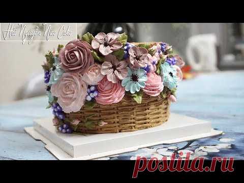 Bánh Sinh Nhật Tạo Hình Giỏ Hoa Với Kem Topping - Decorate Basket Flower Cake