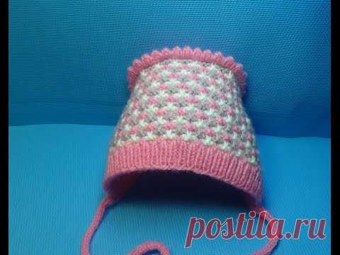 Вязание спицами детская шапочка-чепчик #143