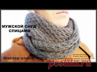 МК Мужской снуд двухсторонним узором. (вязание спицами)