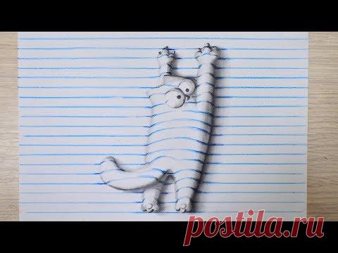 Как рисовать кота Саймона 3д рисунок на бумаге / How to draw Simon's cat 3D drawing on lined paper