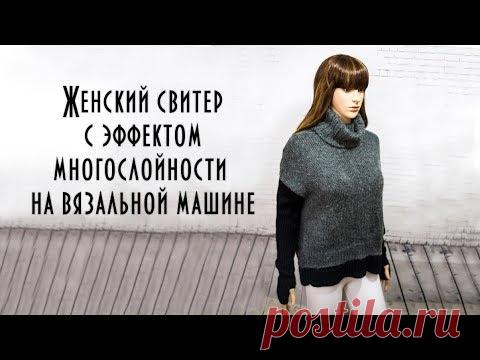 Женский свитер с эффектом многослойности на вязальной машине How to tie a sweater