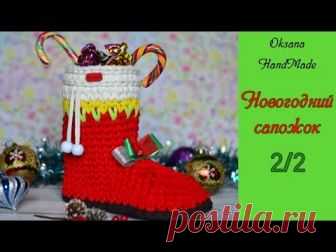 Новогодний сапожок из трикотажной пряжи. Мастер класс 2/2 часть. Christmas boot