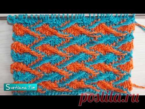 Зигзаг Двухцветный рельефный узор. Ленивый жаккард. Вязание спицами # 572