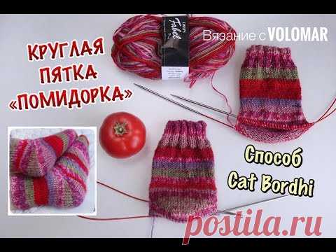 КРУГЛАЯ ПЯТКА "ПОМИДОРКА" // КАК ВЯЗАТЬ ПЯТКУ У НОСКА СПИЦАМИ // МЕТОД CAT BORDHI