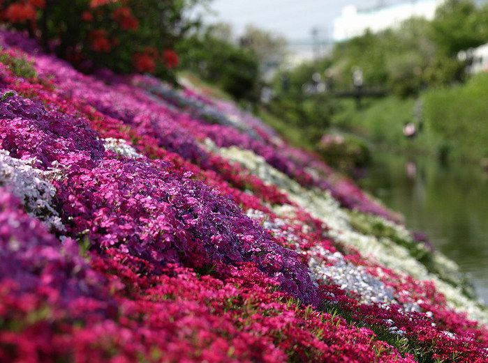 Цветение флоксов в японском парке Хицужияма.