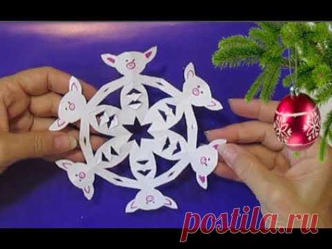 Удивительная Снежинка Свинка / Как сделать снежинку 2019 / Новогодние Поделки Из Бумаги Оригами
