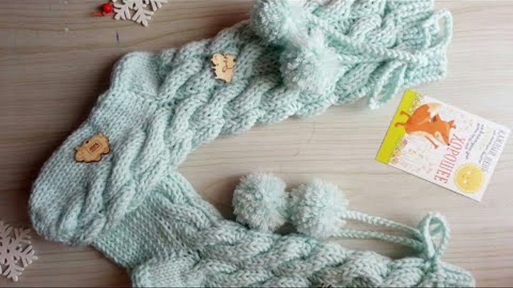носки с косами на двух спицах / модные носочки с косами мастер класс