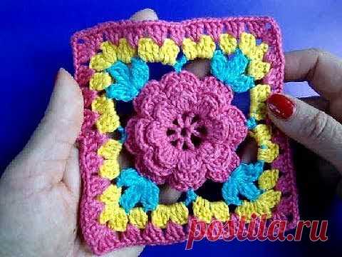 Вязание крючком Урок 253 Мотив с цветком Crochet square with flower - YouTube