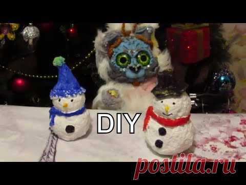 Снеговик из папье маше своими руками\украшение на елку\поделки с детьми