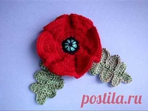 Как вязать мак Урок20 How to crochet poppy Cómo amapola crochet - YouTube