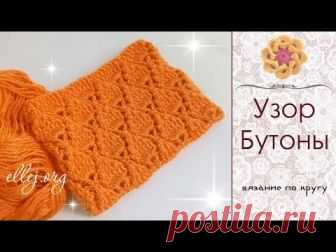 ♥ Узор для снуда, шапки с объемными листочками • Бутоны • Мастер-класс и Схема вязания • ellej.org