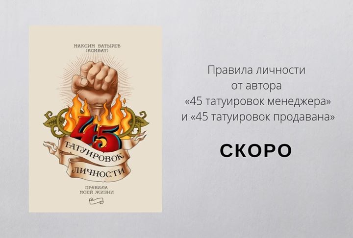 «45 татуировок личности» Максима Батырева: mif.to/45tattoos Имя Максима Батырева широко известно в российском бизнес-сообществе. Его карьерный путь можно назвать выдающимся, и это не будет преувеличением. Рядовая должность сотрудника отдела продаж — 15 лет назад. Собственная компания Batyrev Consulting Group, работающая по семи направлениям, — сегодня. Лучший продавец. Лучший руководитель отдела. Лучший коммерческий директор года России. Лучший автор года России в номинации «Бизнес-литература»…