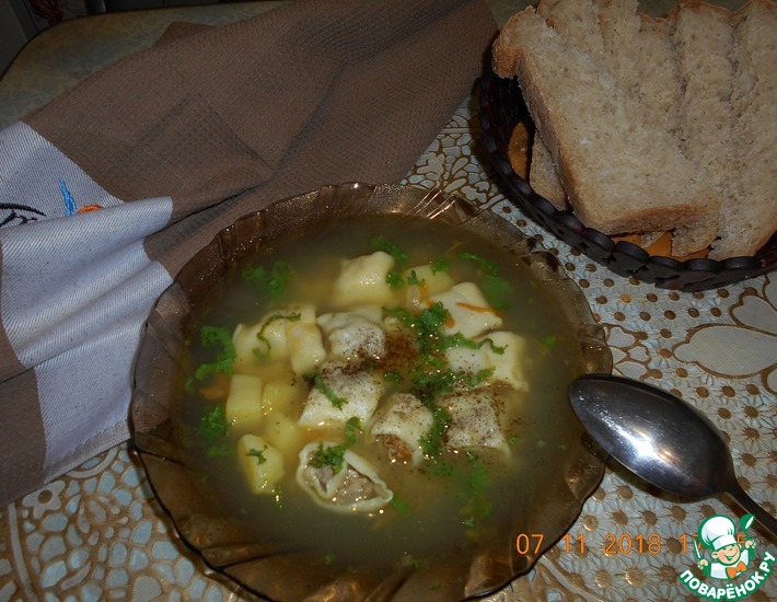 - Замесить крутое тесто, накрыть и оставить на 15 минут. Кастрюлю с 2 литрами воды ставим на плиту, добавляем нарезанный кубиками картофель, даем закипеть, уменьшаем огонь, варим на медленном огне.