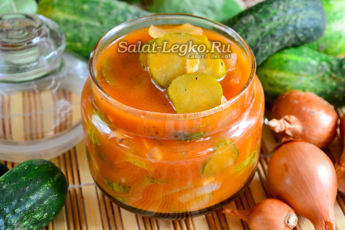 Cалат из огурцов с томатным соусом на зиму, рецепт