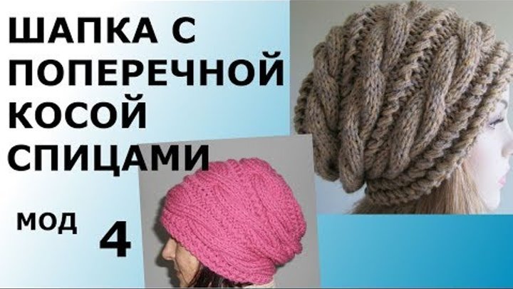 ШАПКА СПИЦАМИ С ПОПЕРЕЧНЫМИ КОСАМИ .МОДЕЛЬ 4.