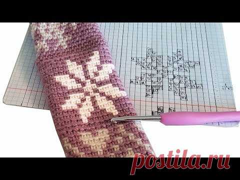 ЖАККАРД по кругу КРЮЧКОМ без накида Без смещения узора За заднюю полупетлю Жаккард снежинка