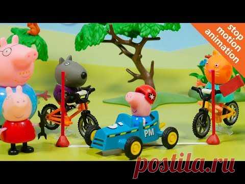 Джордж и Пеппа на автомобильных гонках - YouTube