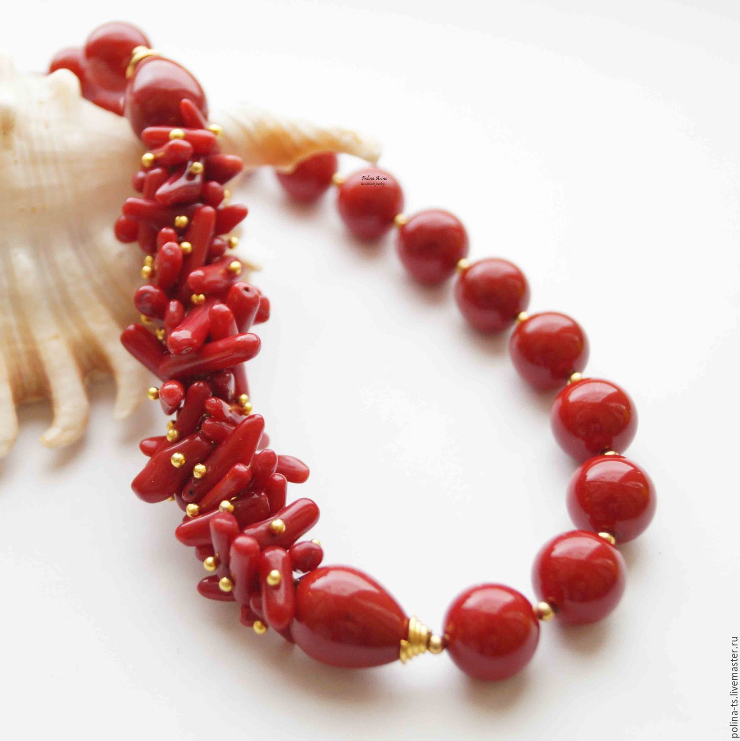 Купить Асимметричное колье 'Красное-прекрасное!))' майорика, коралл - колье, комплект украшений, polina arina