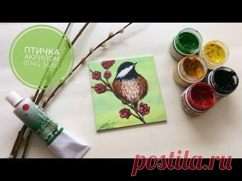Рисуем акрилом птичку (eng sub) We draw acrylic bird