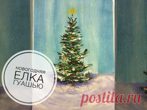 Как нарисовать новогоднюю ёлку гуашью пошагово для начинающих Christmas tree paint acrylic