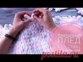 Плюшевый плед своими руками для начинающих. Вяжем без спиц и крючка. Alize puffy ❤