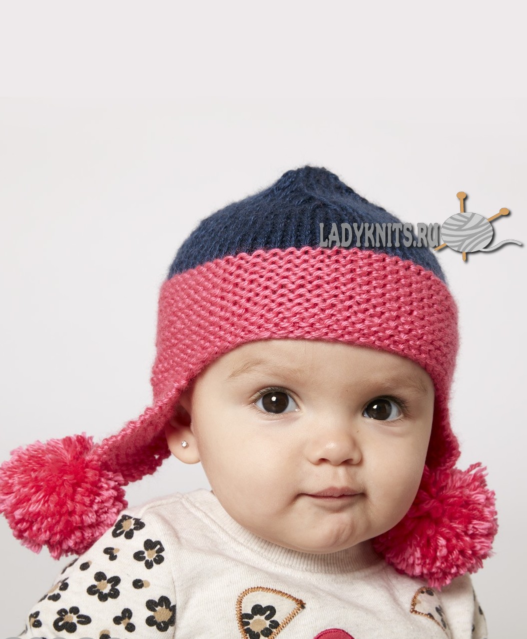 Вязаная спицами детская шапка-ушанка от Caron