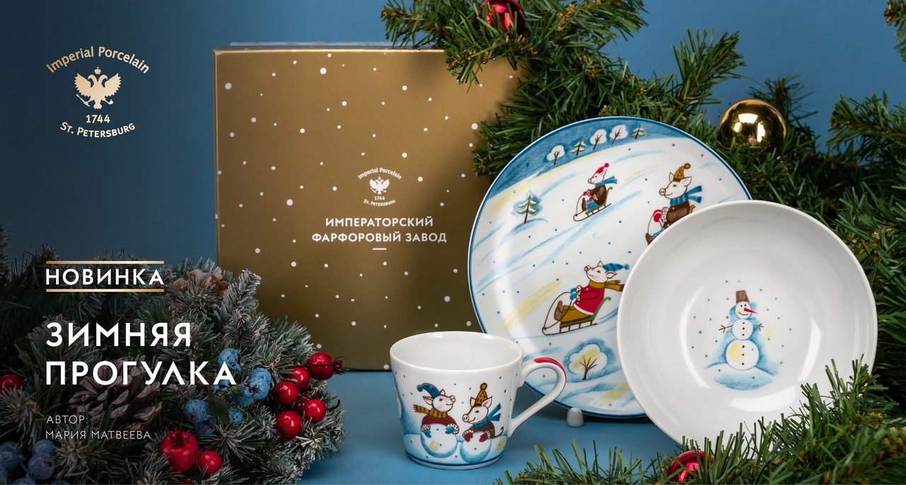 Новинка Детский набор «Зимняя прогулка» Императорский фарфоровый завод представляет Вашему вниманию детский набор в подарочной упаковке «Зимняя прогулка». Фарфоровые изделия украшены символами Нового 2019 года – забавными поросятами, катающимися с заснеженной горки. Веселые персонажи станут отличными друзьями для Вашего ребенка и наполнят время завтрака, обеда и ужина положительными эмоциями! Подарочный набор «Зимняя прогулка» разработан специально для детей – он удоб...