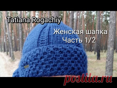 Женская шапка вязаная спицами. Вязание по кругу. Часть1/2