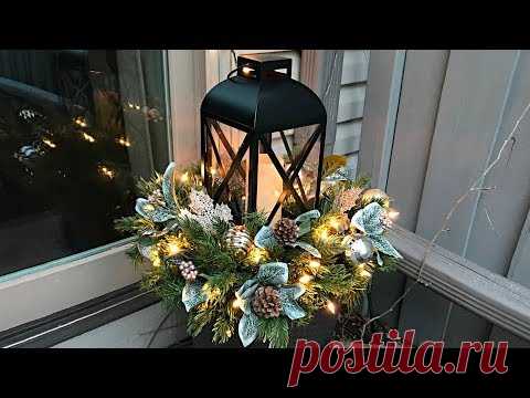 Easy Christmas Planters - Lantern Planter Floral Arrangement - Outdoor Decorating