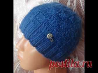 Зимняя мужская шапка шахматка спицами — размеры 58-60 | Вязание Шапок - Модные и Новые Модели