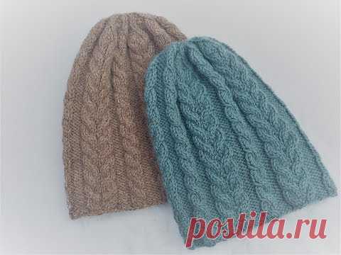 Как связать спицами женскую шапку на р.56-58 . Шапка с косами . Вяжем вместе . МК.
