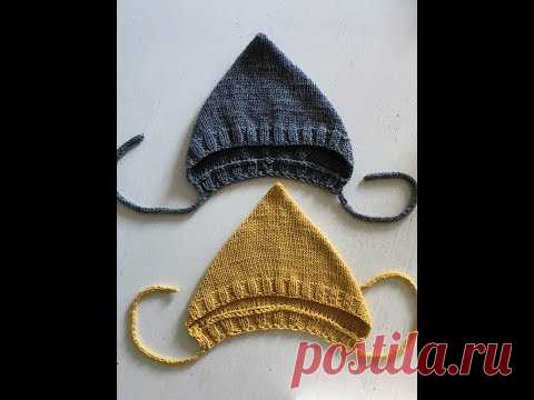 Как связать чепчик спицами на 3-6 мес. Чепчик - эльф. Вяжем вместе .МК.