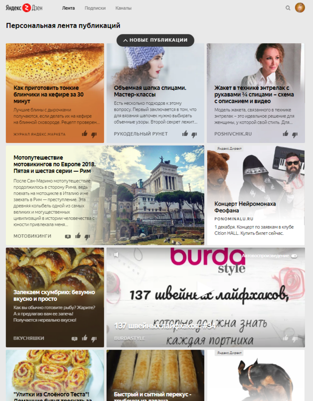Яндекс Дзен — персональная лента публикаций на основе ваших интересов: статьи и новости из интернет-изданий, популярные видео и фото