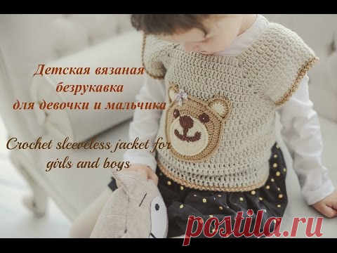 Детская вязаная безрукавка. Часть 3. Crochet sleeveless jacket for girls and boys. Part 3.
