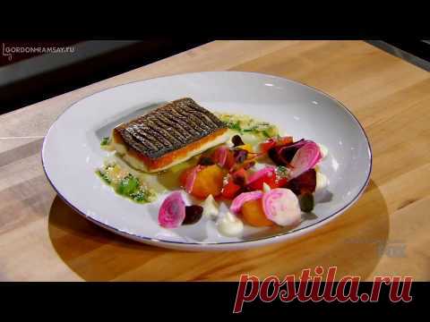 Гордон показывает как готовить сибаса с пюре из цветной капусты