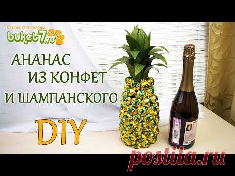 АНАНАС ИЗ КОНФЕТ И ШАМПАНСКОГО МАСТЕР-КЛАСС ☆ Декор шампанского ☆ Подарок на Новый Год своими руками