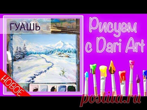 Видео урок! Рисуем гуашью зимний пейзаж с горами! #Dari_Art