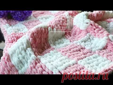 Alize Puffy ekoseli model nasıl yapılır? bebek battaniyesi-baştan sona anlatım