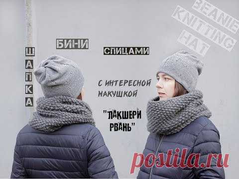 Шапка бини спицами. Шапка из прямоугольника. Женская шапка спицами.