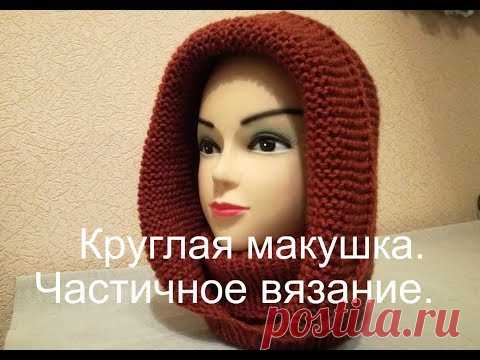 Капюшон спицами. Круглая макушка. Частичное вязание.