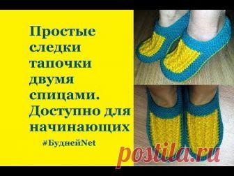 Простые следки тапочки двумя спицами. Доступно для начинающих.