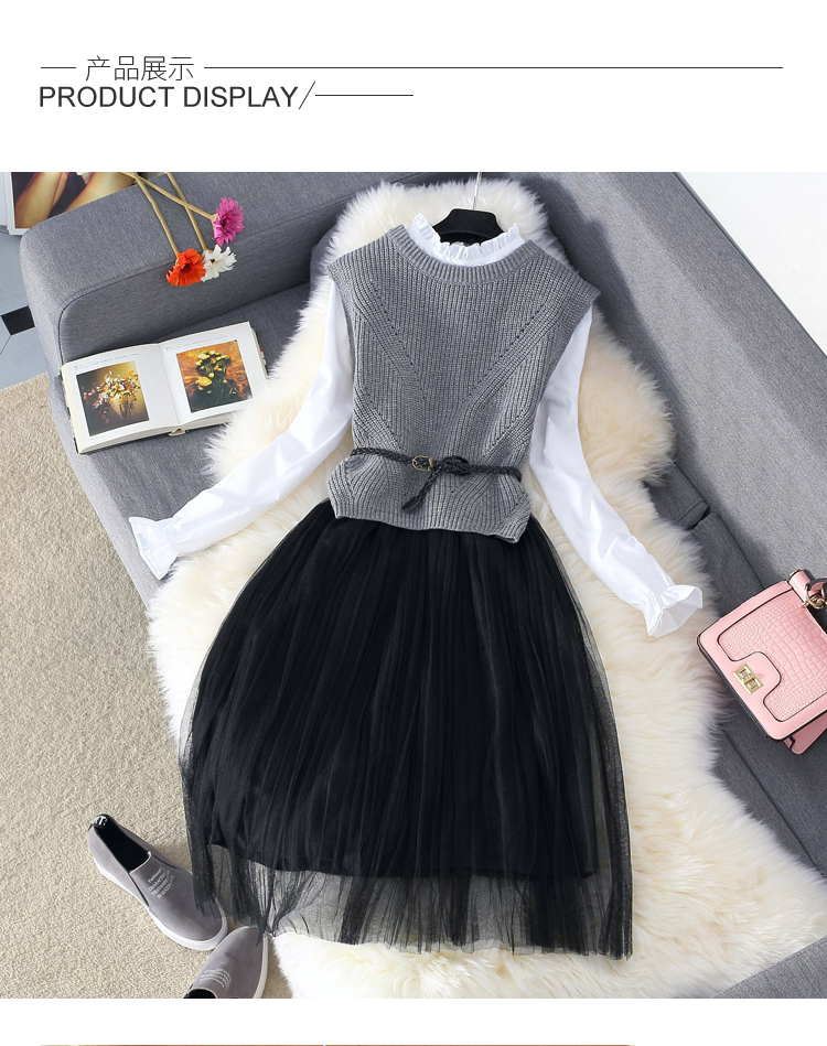 Новинка 2017 года, Осеннее женское платье из двух предметов, костюм для девочек студенток, газовое платье рубашка с вышивкой + вязаный свитер, жилет, топ, платье двойка купить на AliExpress