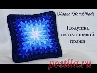 Подушка крючком из плюшевой пряжи. Pillow crocheted out of plush yarn.