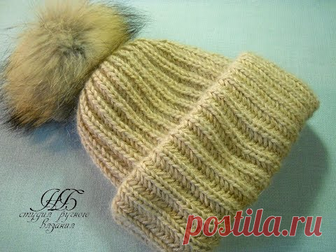 МК Двойная шапка из мохера английской резинкой с отворотом.