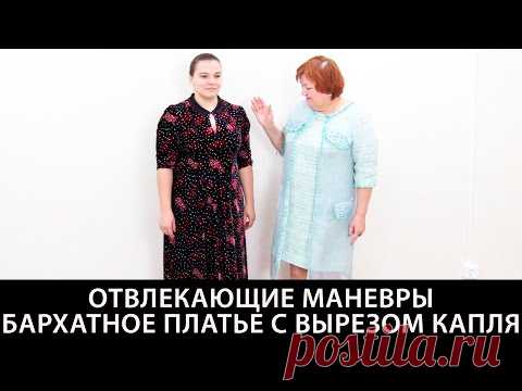 Модель бархатного платья с шелковым воротником и вырезом каплей в мелкий белый горох