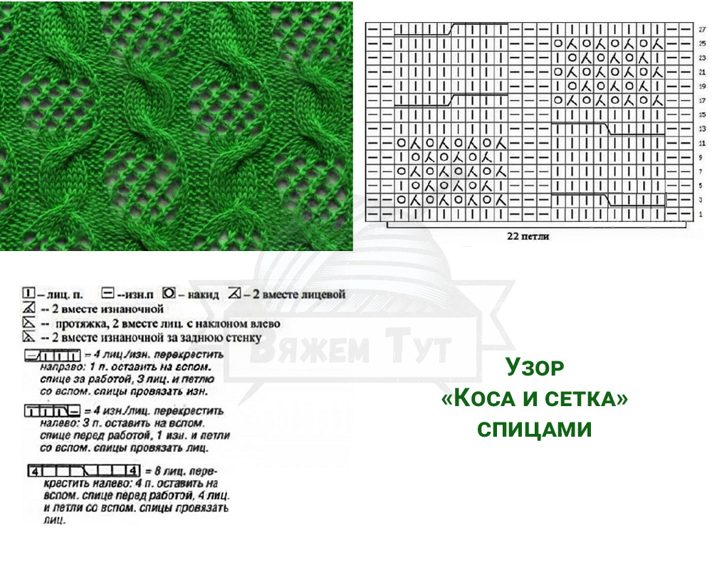 Узор «Коса и сетка» спицами Вопреки распространенному мнению, что косы — это узор для плотной, теплой одежды попробуйте связать летнюю кофточку такими косами с сеточкой.