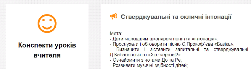 Стверджувальні та окличні інтонації - Музика - 1 - 4 класи - Методичний каталог - Конспекти уроків вчителя