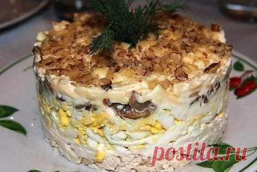 "СЛОЁНЫЙ САЛАТ С КУРИЦЕЙ, ГРИБАМИ И ГРЕЦКИМ ОРЕХОМ" Просто обалденный вкус! Р...